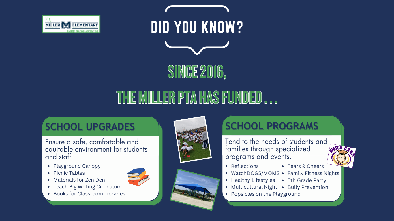Thank you for your support and all that you do to make the Miller PTA the best!!