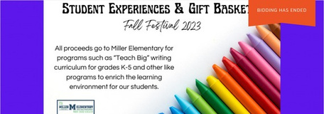 Silent Auctions are held during the year to raise funds that help support various Miller Elementary programs and events, enhance student enrichment opportunities, and support staff appreciation. Check back during the year to see most current open auction and place your bet!